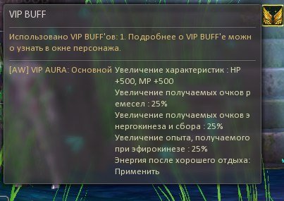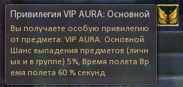 Изменения после рестарта 22.10.2024. Теперь с мешка с премиумом падает 2 предмета: 1-ый предмет - карта VIP только на персонажа, на котором открыли набор премиум. 2-ой предмет активирует основной премиум на весь аккаунт. Все усиления прокачки и дроп работают на весь игровой аккаунт. Увеличение получаемого опыта: 100% Шанс получения трофеев: 50% Увеличение количества очков Бездны в PvP: 10% Сокращение времени ожидания повторного применения телепортации: 50% Увеличение шанса усиления: 5% Увеличение шанса усиления маг.камнями: 5% Увеличение шанса аугментации: 5% Уменьшение потери очков Бездны в PvP: 10% Особый отдых для восстановления сил Changes after restart on 22.10.2024. There are now 2 items dropping from the premium: The 1st item is a VIP card only on the character on which the premium was opened. VIP BUFF - HP/MP +500 - Increases Crafting Skill: 25% - Increases Gathering and Vitality Extraction Skill Levels: 25% - Increases Aether Extraction Skill Level: 25% - Strong Energy of Repose: apply VIP AURA - Drop rate: +5% - Fligh time: +60 seconds The 2nd item activates the main premium for the entire account. All boosts and drops work for the whole game account. Increases EXP Gain: 100% Drop rate: +50% Increases Abyss Points: 10% Decreases Return Cooldawn: 50% Increases Enchant Success Rate: 5% Increases Manastone Socketing Success Rate: 5% Increases Ascension Success Rate: 5% Abyss Points Loss Reduction: 10% Strong Energy of Repose: apply