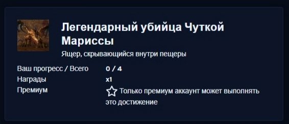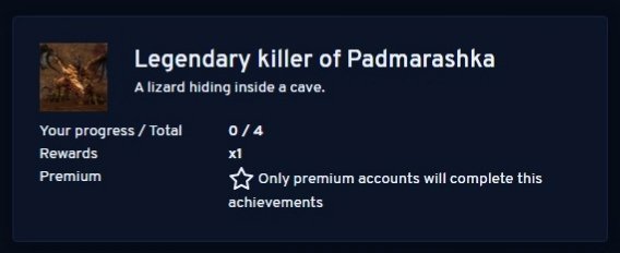 Дорогие друзья! 07.02.2023 мы добавили в систему достижений ачивку "Легендарный убийца Чуткой Мариссы". Просим обратить ваше внимание на то, что она временная - доступ к ней будет до 7 марта 2023 года. Выполнение данной ачивки будет доступно только игроков с ПРЕМИУМОМ, награда - VIP BUFF (15 дней; можно передать)*. Не забывайте, чтобы ачивка засчиталась нужно чтобы был получен опыт персонажем. Успейте получить награду за её выполнение! Dear friends! On 07.02.2023 we added the "Legendary killer of Padmarashka" achievement. Please note that it is temporary - it will be available until March 7, 2023. This achievement will be accessible only for players with PREMIUM, the reward is VIP BUFF (15 days; can be traded)*. Do not forget that in order for the Achievement to be counted must be obtained experience. Hurry up and get your reward for completing it! * -